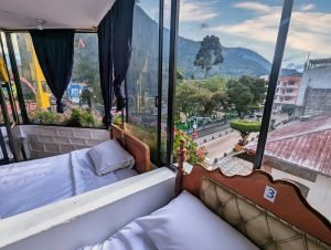 Banos at your window, in a 6-person mixed dorm with giant lockers, private bathroom, wifi, and fabulous view of the central park.Our shared dorms for 6 persons, is perfect for you and your friends, or if you come alone and want to meet new people. There are 6 beds with their own electrical socket and big locker. A great room for budget travelers who want to have some fun!